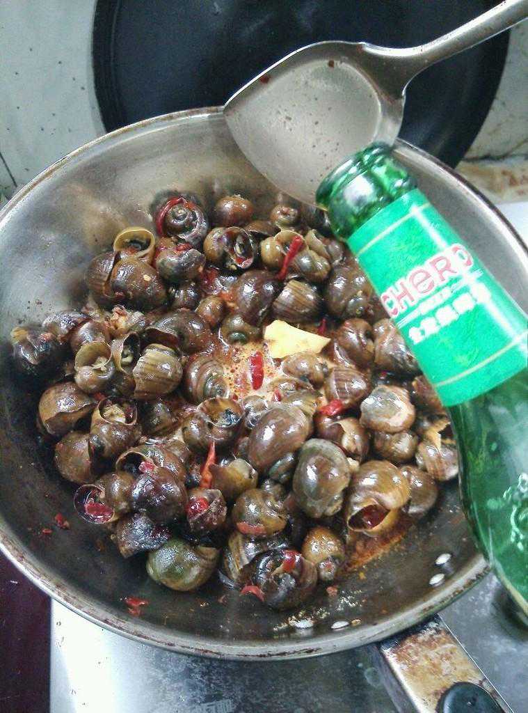 印度人做福寿螺的方法也很简单,就是将捡来的福寿螺壳敲碎。然后放在锅里熬煮,直至完全熟透。
