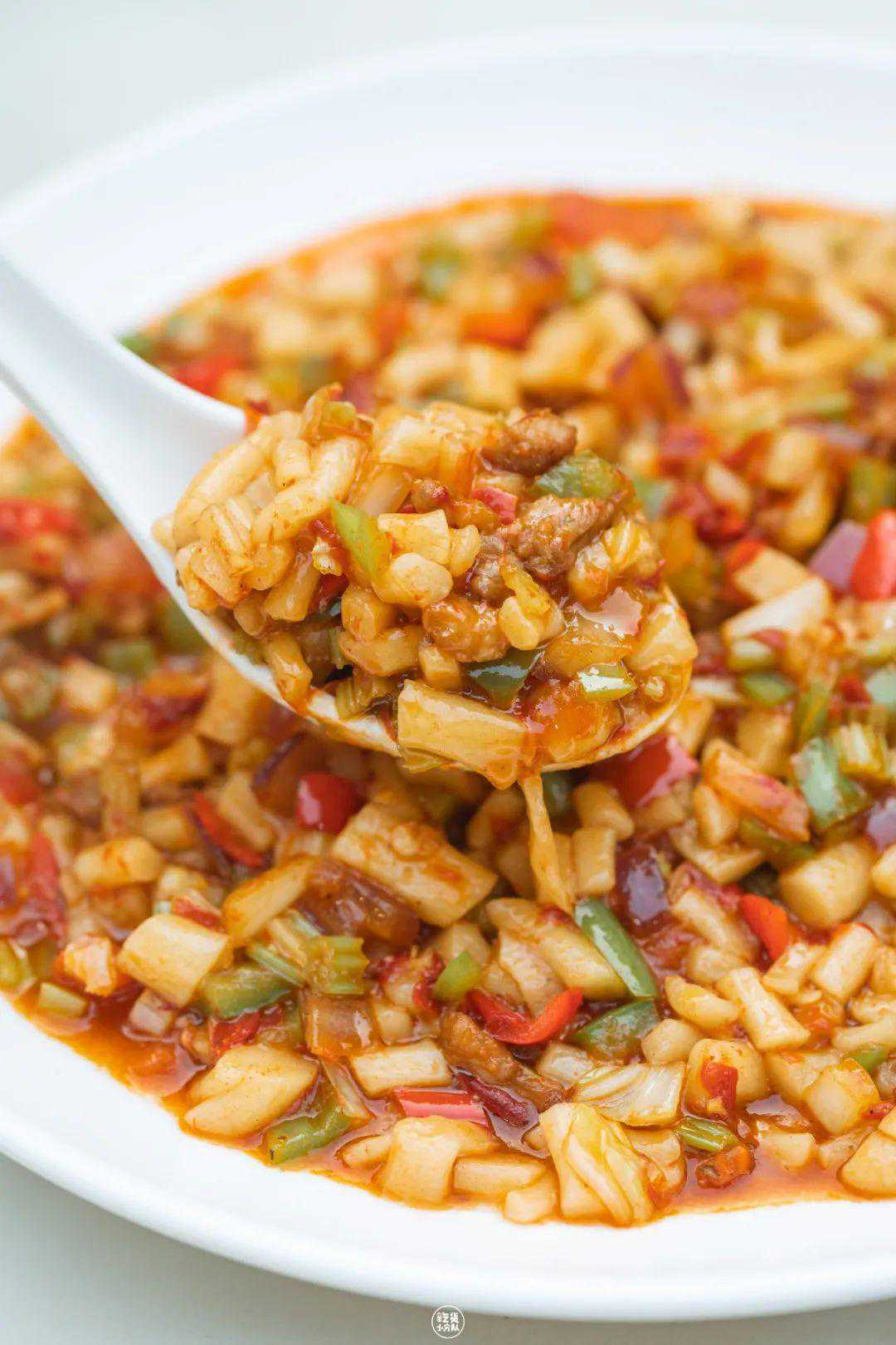 他们家的炒米粉,是师傅特意去新疆学习的,加入了4种辣椒和30多种配料。还进行了味型的调整,更符合广东这边的口味,作为老广点微辣刚刚好。
