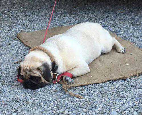 其次:短鼻狗特别要注意呼吸节奏,发现呼吸过于急促就应该做好通风与补水的措施。