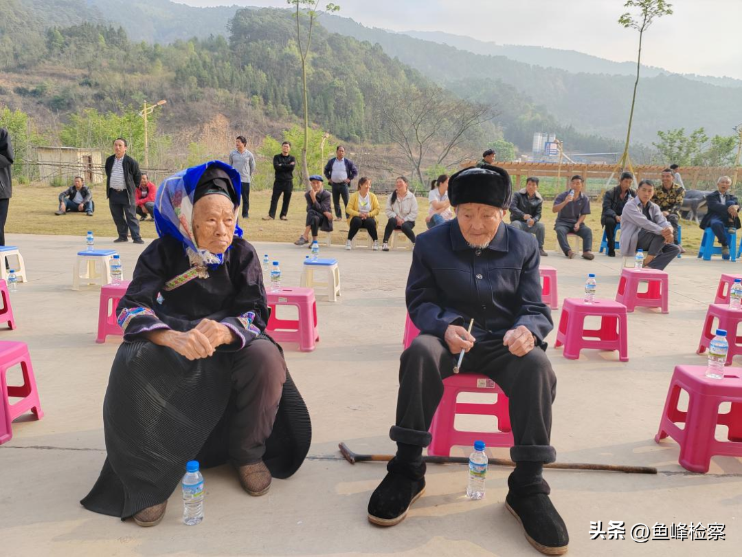 91岁的村民粱秀清还特意穿上了崭新的民族服装。92岁的村民王金国一早就让孩子们把自己扶送到现场。两位耄耋老人坐在队伍的最前排,一会俯首私语,一会翘首望向主席台,开心地笑着。