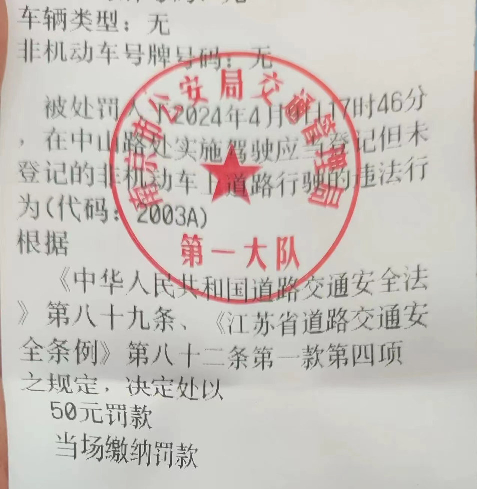 “你这车,没有牌照,还是要罚款。”说着,执勤的交警就给王先生开具了一张罚款单。瞬间,就把王先生给搞蒙了,自己骑的自行车呀,也要上牌照,简直是闻所未闻。