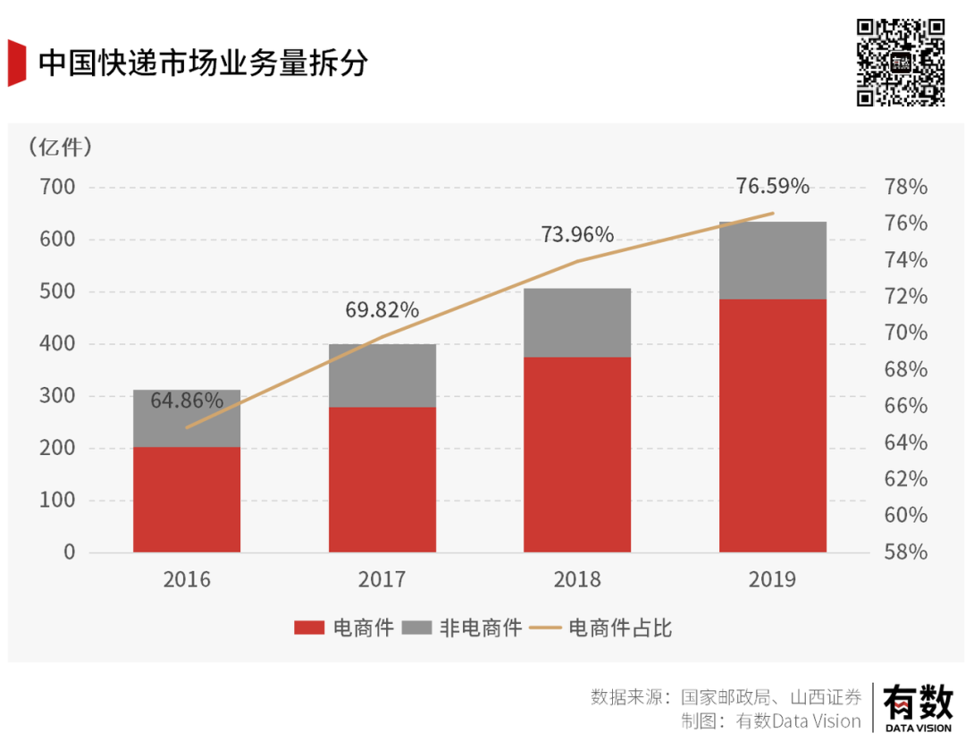 2017-2019年间,中国快递市场的新增单量,三分之二都由拼多多贡献[4]。