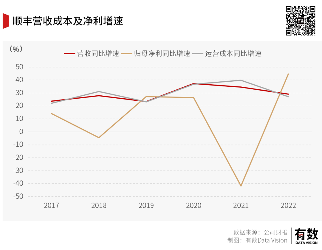 早在2013年,顺丰就曾以6折的价格、屈尊降贵地和通达系抢饭碗,架不住成本太高,次年便因盈利大幅下滑而暂停;2016年,顺丰又想打折迎客,可每单15-17元的优惠价,还是卷不过价格战打得你死我活的通达系。