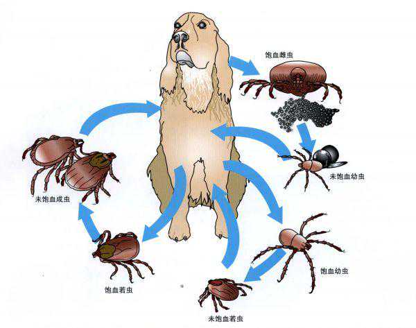 蜱虫的生活史图片来自《兽医寄生虫学》图片来自《辉瑞寄生虫彩色图谱》