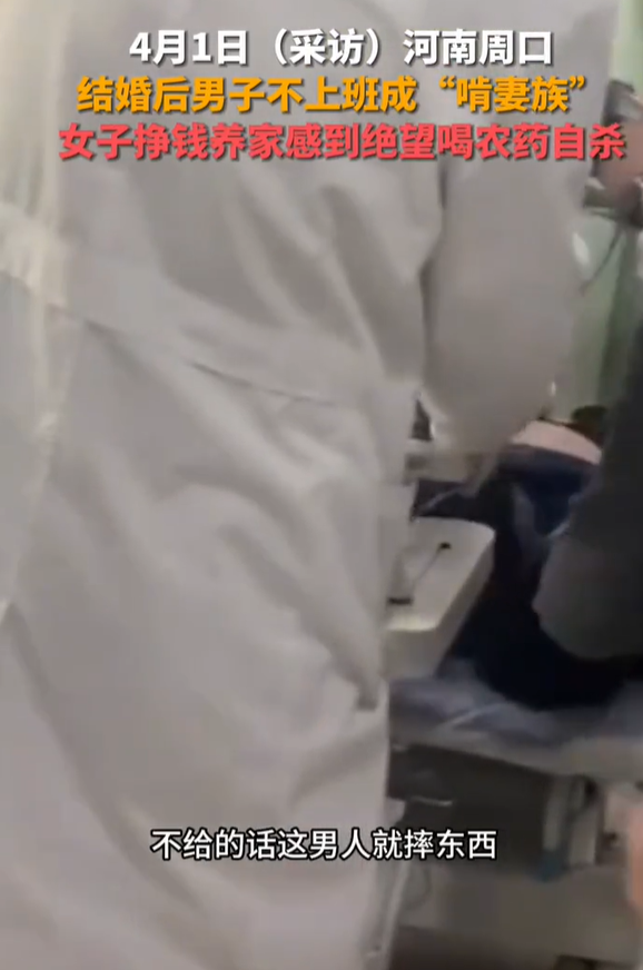 事情发生在河南周口,男子结婚后不去上班挣钱,反倒让妻子挣钱养家,妻子对生活感到绝望后,选择喝农药自杀。
