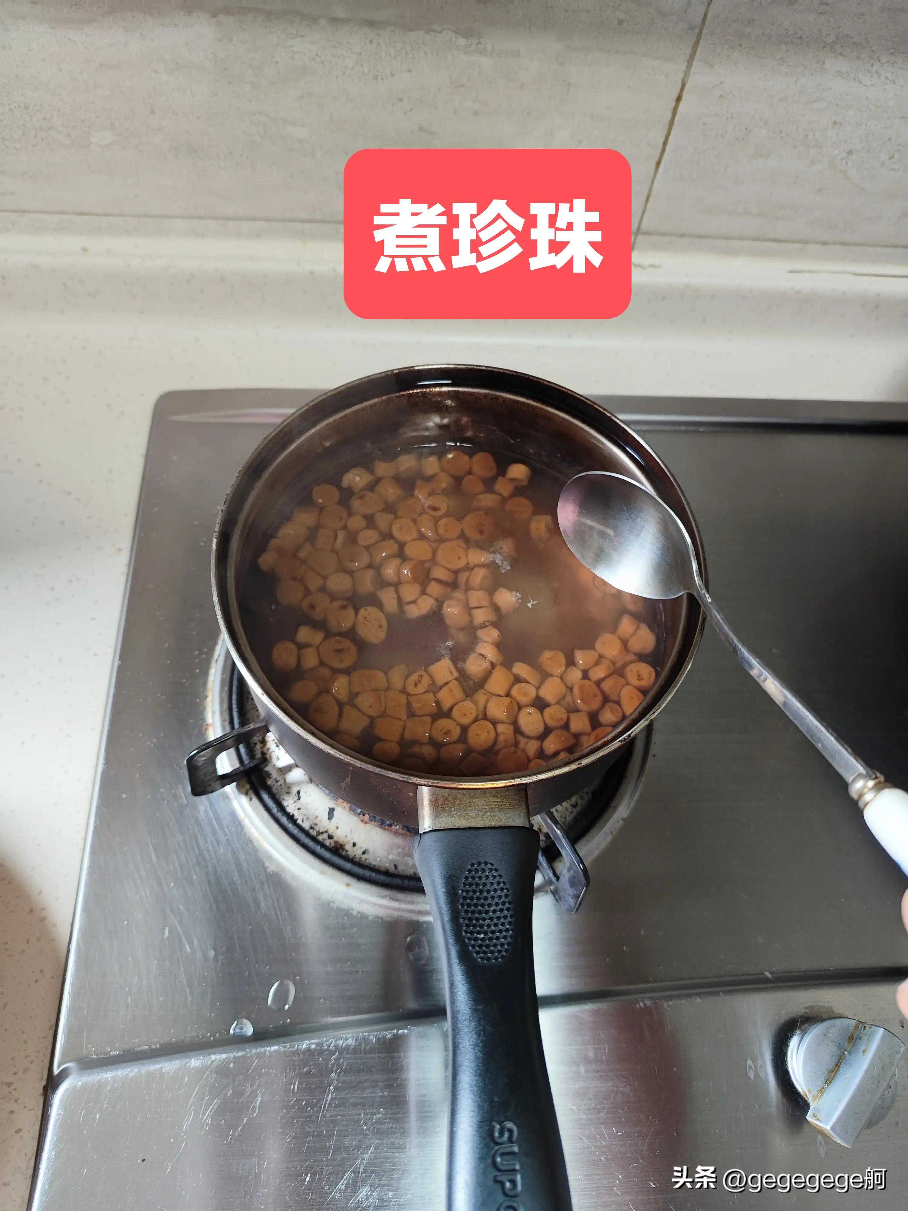让她们在房间耐心等待,我按步骤一步步来,煮了十多分钟,又关火焖了十多分钟,为了吃起来更Q弹,又过了一遍冷水。看着一颗颗晶莹的小珍珠,倒也满心欢喜。我和娃忍不住各尝了一个,不小心烫了舌头。小闺蜜已被叫回家去了,没尝到熟珍珠是不是比生的好吃些。