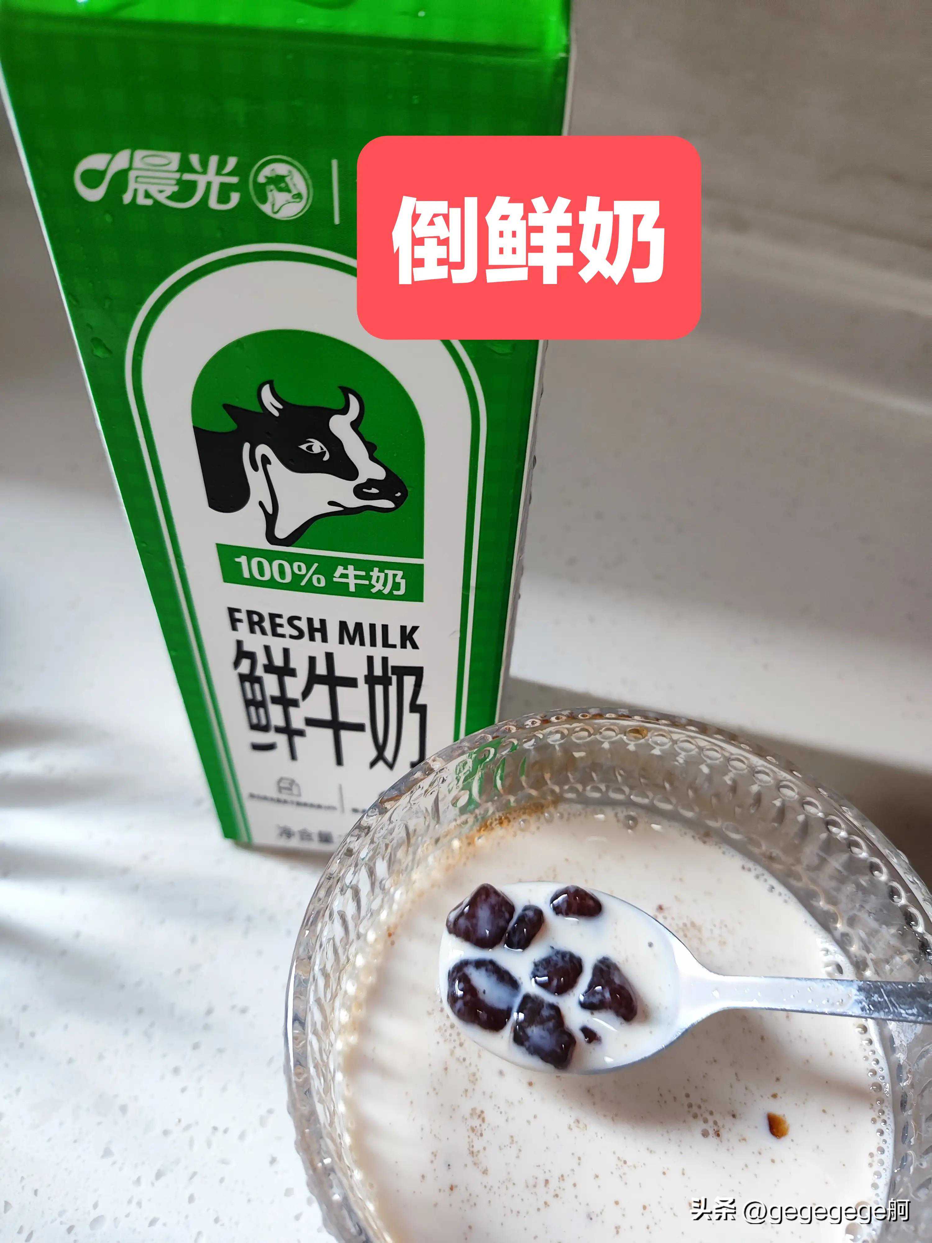 娃在熬珍珠时,我在网上下单买了鲜奶,珍珠熬好了,鲜奶也到货了,两不耽误。自己动手做,总是对成果充满了期待。倒鲜奶时,娃在旁边一直啧啧称叹,迫不及待想尝一口了。