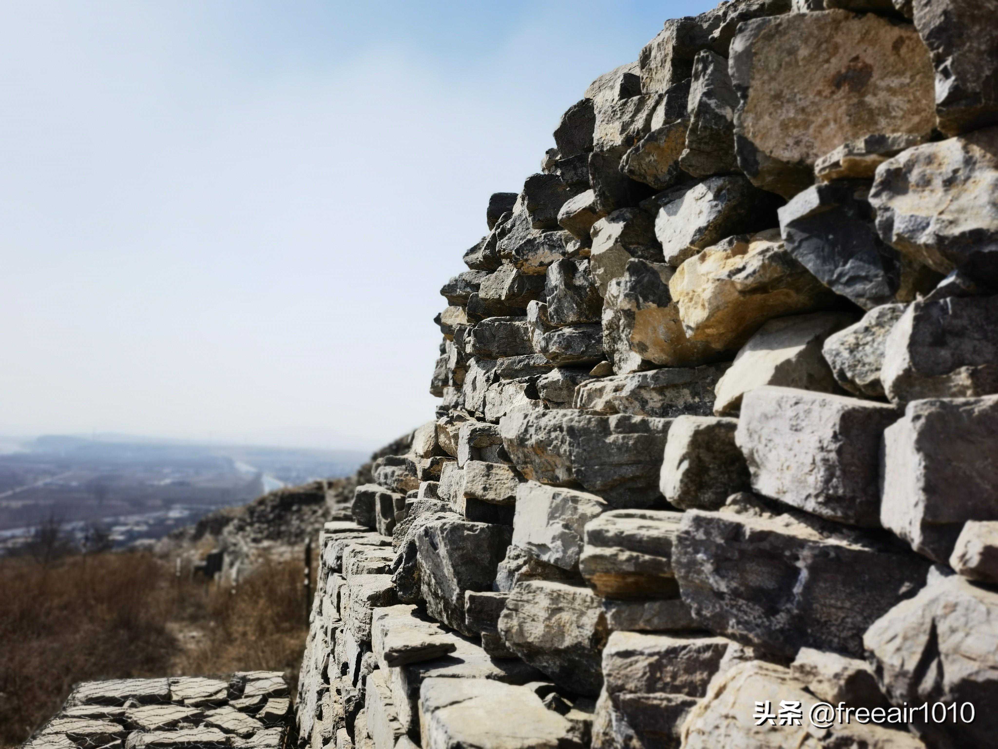 城北的城墙现存较好,高约六七米,宽约二三米,但城内的墙面已经坍塌,露出城墙的内部墙体。从结构上,石料均为咬茬堆砌,墙体保护面虽已无存,但墙体依然顽强屹立。