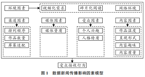 近十年来,关于数据新闻的研究,主要集中于生产过程中的不同环节、要素和生产基础,探讨数据新闻面临的成本高昂、培训滞后等诸多问题,而从受众视角审视数据新闻的传播,目前还处于探索阶段。关于数据新闻传播的影响因素研究,相关研究发现,在用户受教育水平较低的情况下,用户对可视化图形的认知及理解程度要明显好于纯文字,然而当用户的受教育水平较高时,这种显著差异并不存在[7][8]。学者们在使用量化研究的基础上,还运用深度访谈,综合研究数据新闻传播的影响因素。刘丽群等使用半结构化访谈法总结了数据新闻可视化信息回避行为的影响因素,并使用问卷调查法对影响因素显著性进行验证,研究显示回避行为主要受到外在的信息超载、内容陌生感,以及受众内在的图表轻视等因素影响[9]。综上所述,国内外关于数据新闻传播效果的研究,主要影响因素如下:一是受众的文化程度;二是受众预期、绩效期望等预测性因素;三是可视化、移动端匹配问题等受众体验;四是平台属性;五是内容、信源等因素影响数据新闻的传播效果。