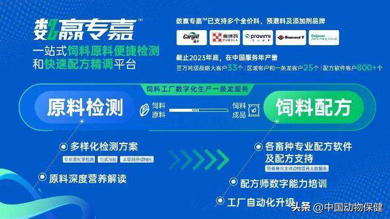 数赢专嘉®是专为中国客户提供的一站式饲料原料便捷检测和快速配方精调的数字营养平台。凭借嘉吉智能云联网移动式NIR、云端数据库和强大的专家团队,数赢专嘉®为客户提供饲料原料便捷检测、原料深度营养解读、各畜种专业配方软件及配方支持、配方师数字能力培训、工厂自动化升级等数字化生产一条龙服务,赋能中国广大饲料生产及动物养殖从业者,助力客户实现原料更优选、营养更精准、生产更高效、效益节节高。