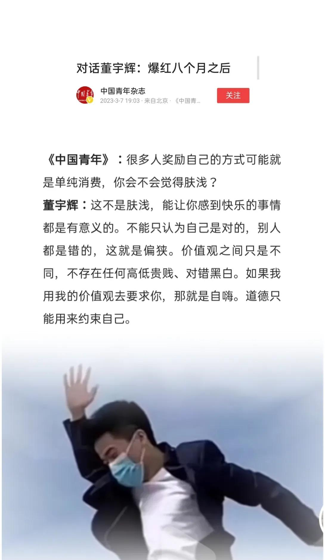 直播节目是他与观众之间的纽带,通过这个平台,他不仅分享着自己的生活和工作经历,更是与粉丝们建立起了一种亲密的联系。在他的直播间里,粉丝们不仅仅是观众,更像是他的朋友和伙伴。无论是开会还是筹备活动,董宇辉都会第一时间向粉丝们报告进展,分享心情,引起粉丝们的共鸣和支持。这种真诚而坦率的态度,让他赢得了无数粉丝的心。