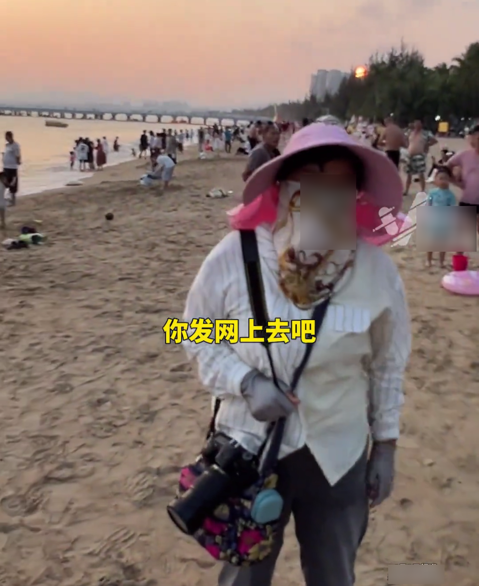 面对大妈的行为,网友有点生气问道:“我给美女拍了一张照片,我是来旅游的,你要干啥?”