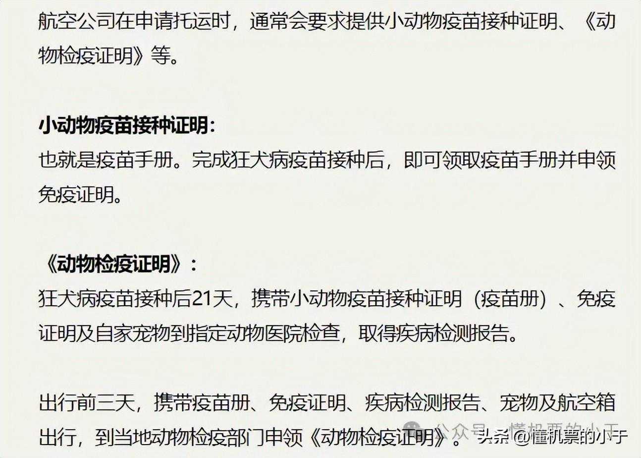 各航司宠物托运要求