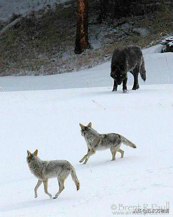 北美黑狼和郊狼的体型对比