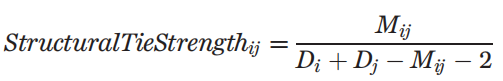 我们评估两个人联系紧密程度的方法主要是依据他们之间的互动的多少,以及他们拥有多少共同好友来进行的。具体来说,我们通过统计领英上会员之间互相发送消息的次数来衡量他们互动的频繁程度。至于他们之间的友谊程度,则是根据他们在建立联系时共同拥有的好友数量来计算的。根据这种基于共同好友的联系情况,我们可以进一步确定他们之间的联系紧密程度如下: