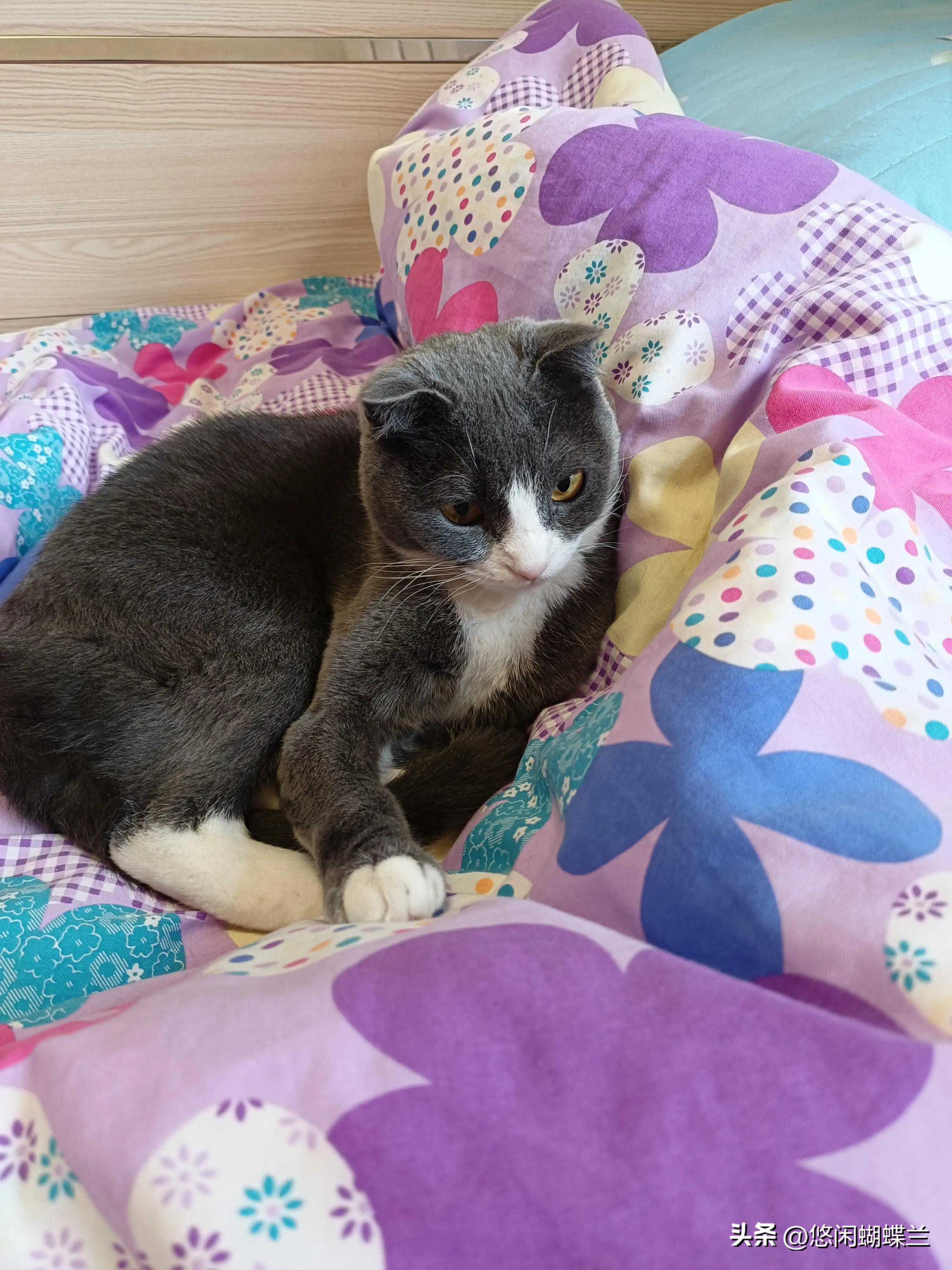 到家里发现妹妹家的猫正在我的被子上睡觉,它可真会找地方,早上走的时候,我就把电热毯开开了,猫咪知道哪里暖和。