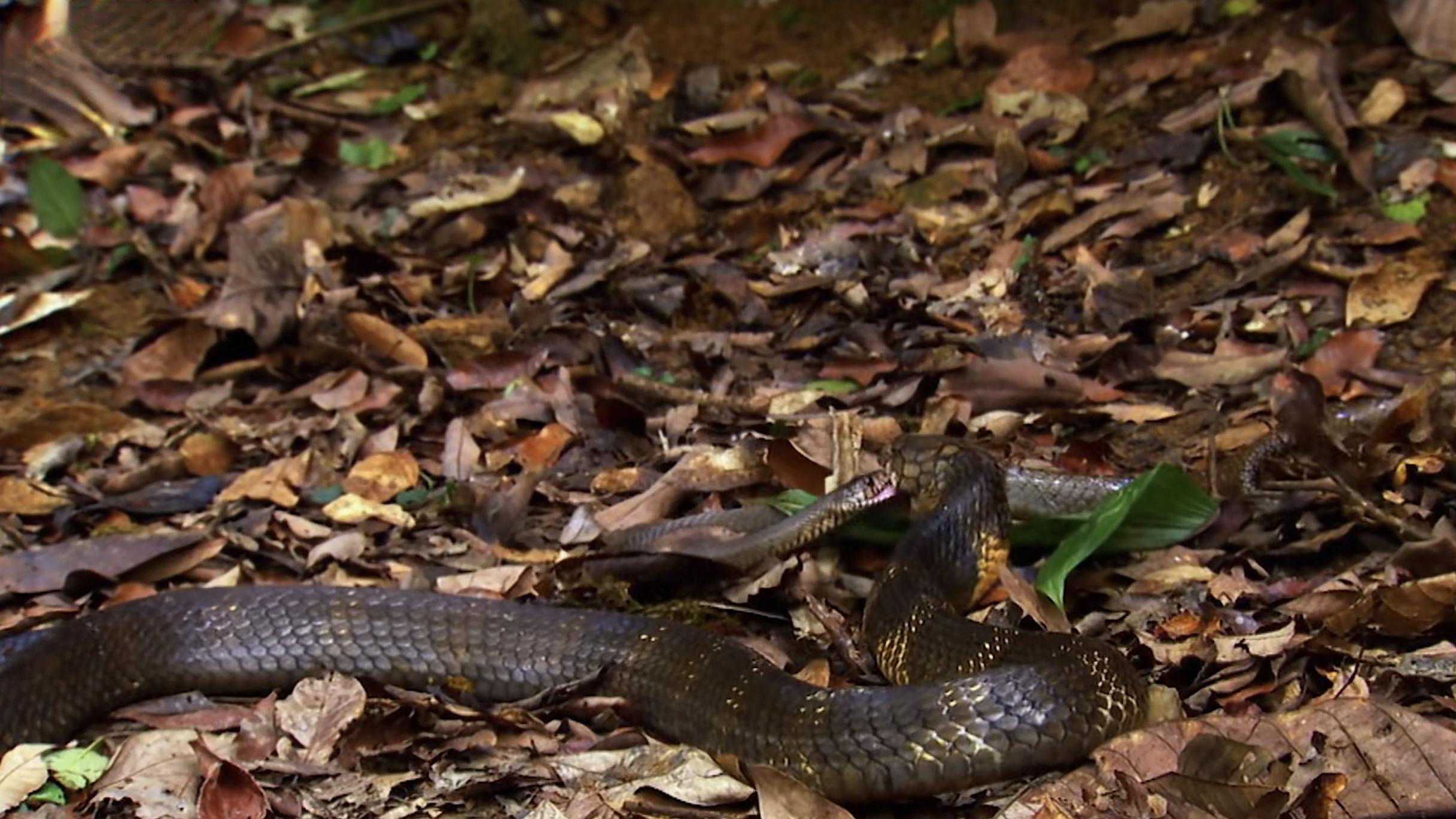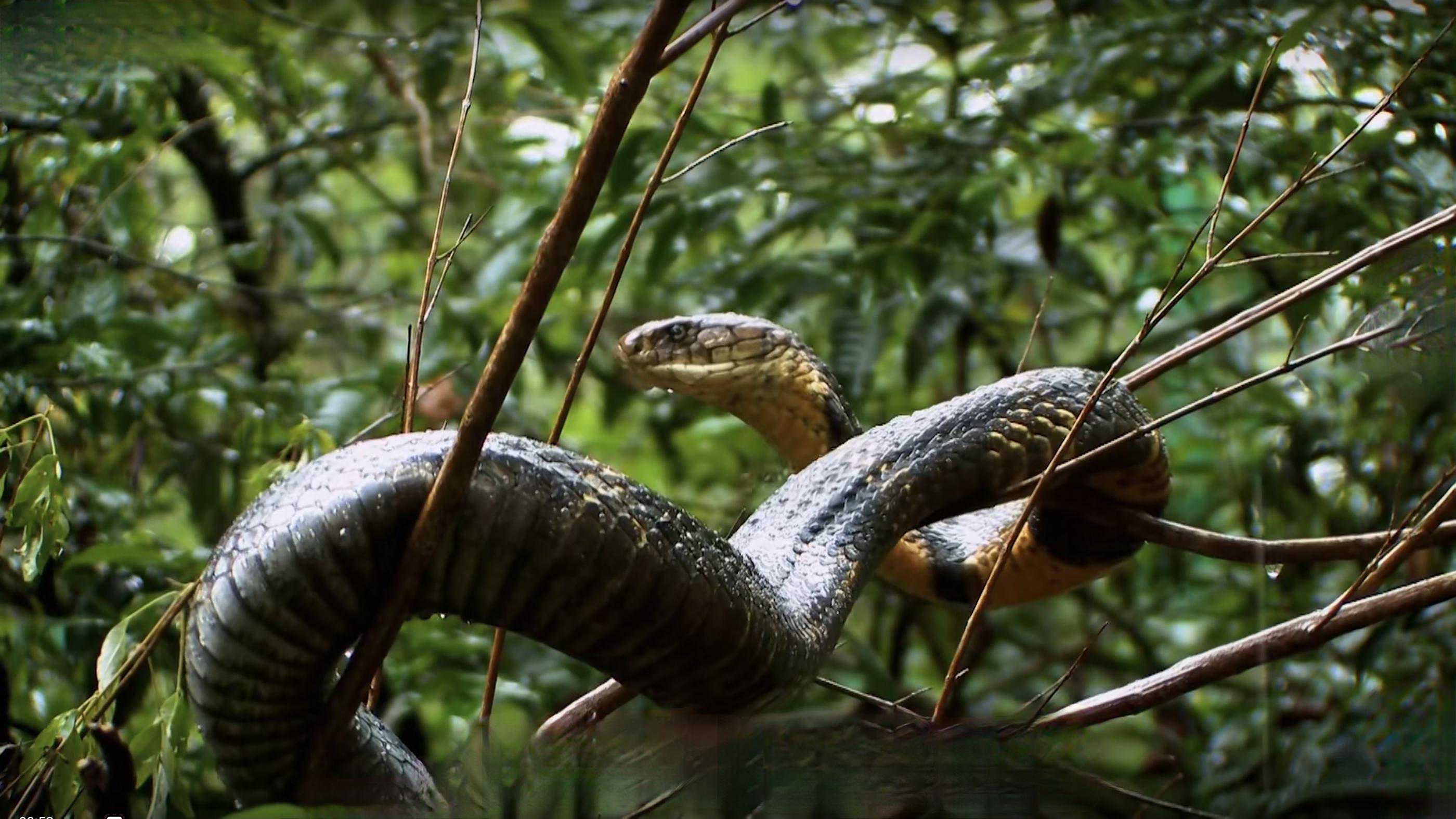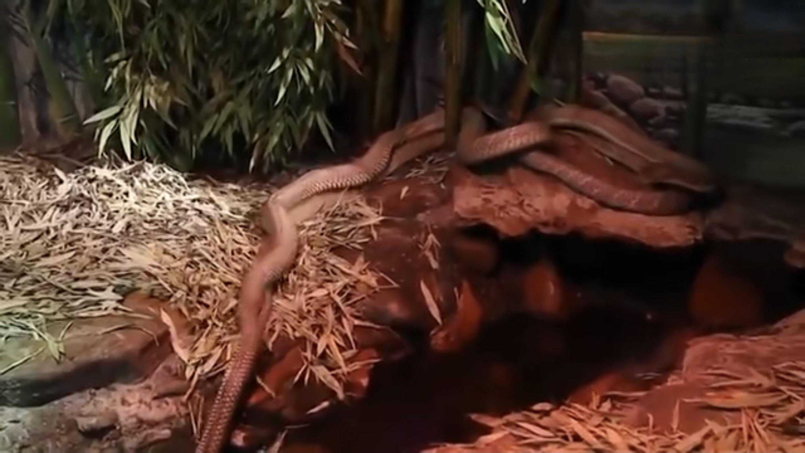 它们有着很强的领地意识,一般一个领地里,只会存在一条眼镜王蛇。而这次红鞋村一次性出现两条,还是比较罕见的。
