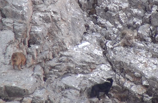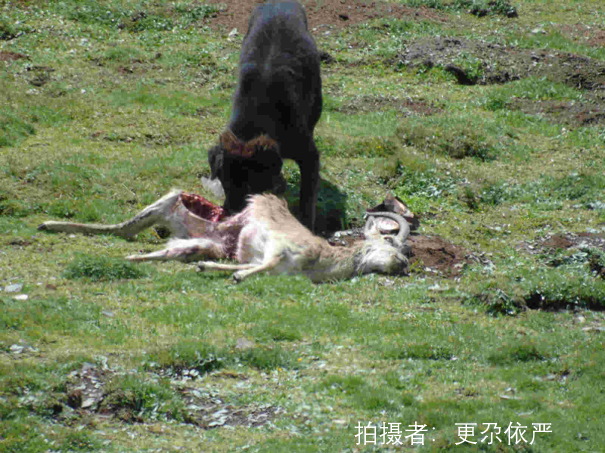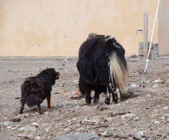在走访当地的过程中,我们经常可以听到有说寺院的流浪狗对着刚捕食完岩羊的雪豹狂吠,吓跑了雪豹;也有寺院的流浪狗吃了小岩羊,当地的岩羊被流浪狗围攻赶下了山等等事件。
