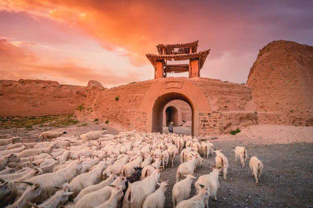 这里还藏着世界上最后一座大漠“龟城”,这座400多年的老城堡,曾是一座显赫的军事要塞,而如今来这里,已不见昔日古城的辉煌,在这片萧条的西北大地上,时常会邂逅赶着羊群归家的牧羊人。