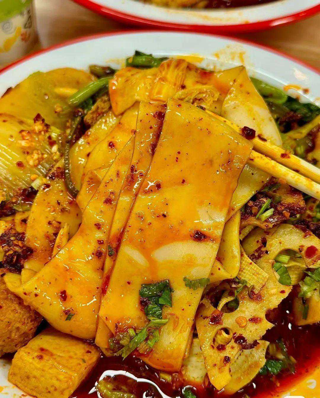 白银麻辣烫主打一个实诚,一大碟麻辣鲜香的麻辣烫,就有几十种食材,在浇上椒香浓郁的辣子油,一口下去粉条Q弹,土豆香脆,羊肉鲜嫩,绝对吧给你香“迷糊”。