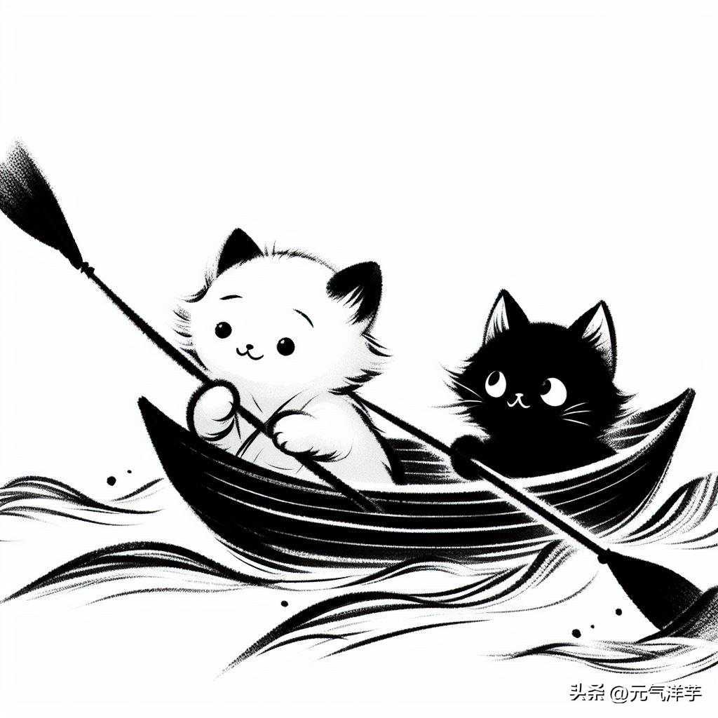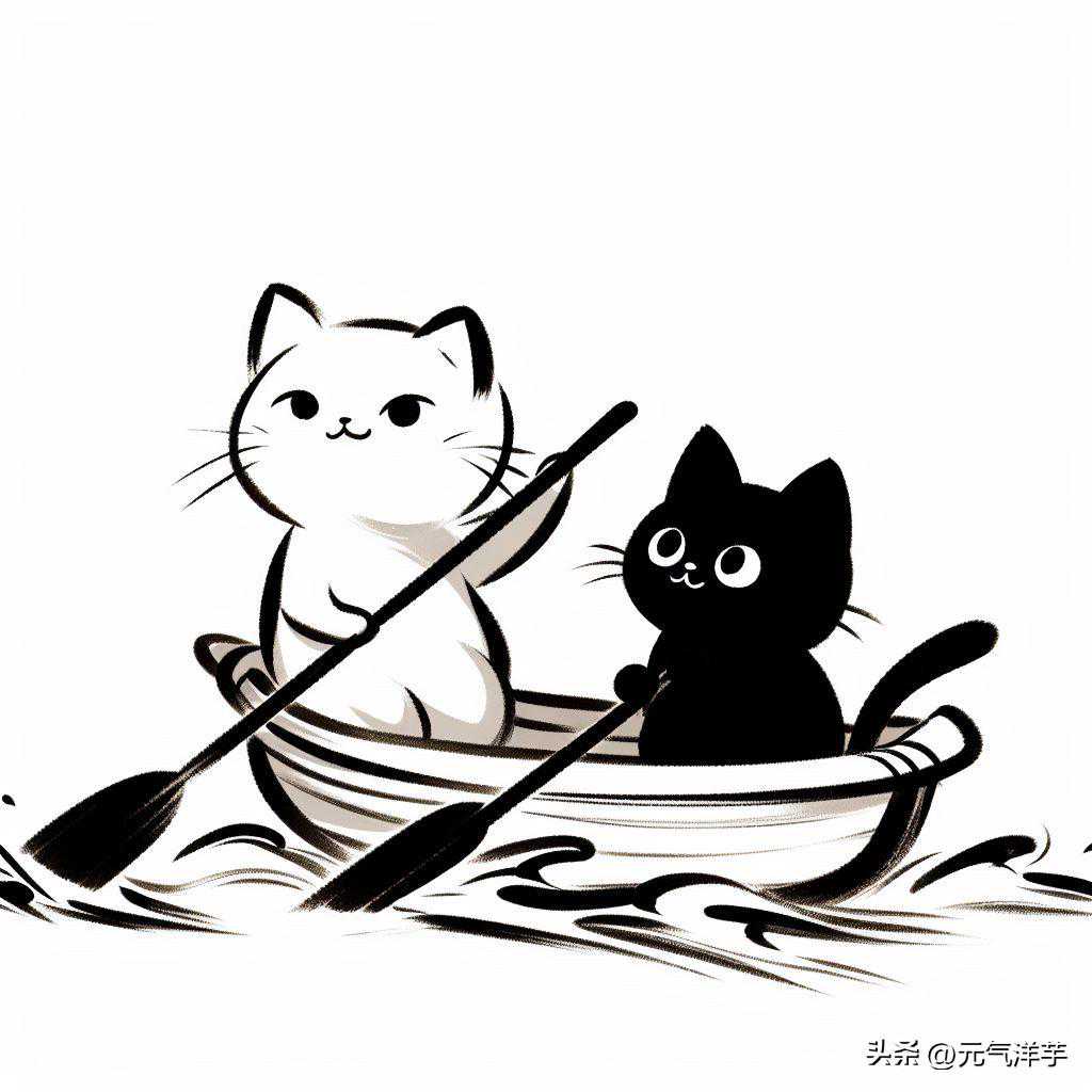 你这一只黑喵,不帮忙划就算了,好像有点挡别个划船呢?