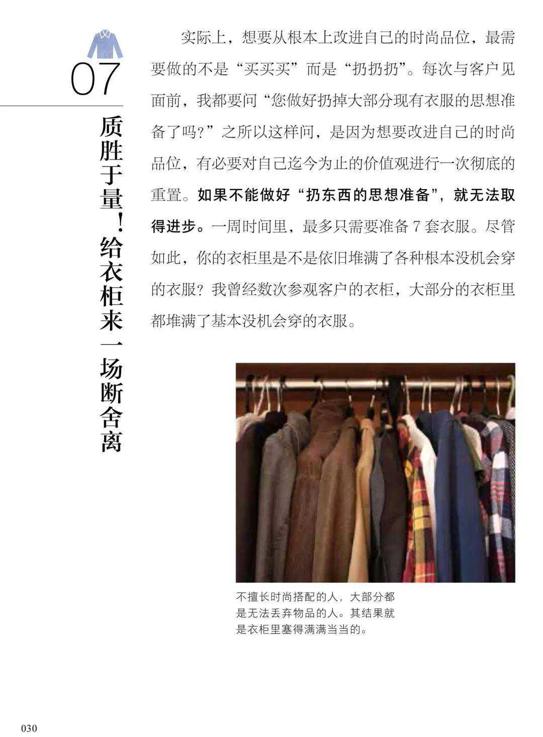 ☆想要穿得简洁时尚,又不知该如何开始改造?每天对着满满当当的衣柜,依然拿不出想穿的衣服?为深陷在这些困扰中的普通人量身打造的穿衣法则。