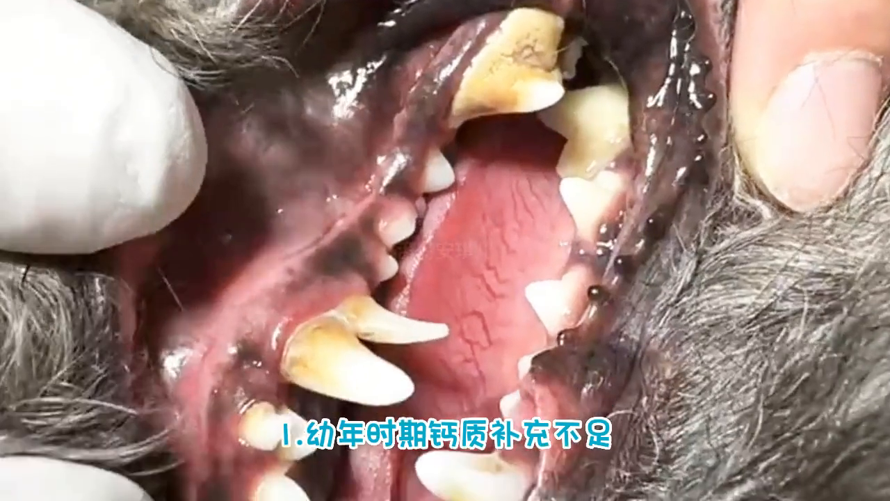 ·1.幼年期钙质补充不足,可能导致双排牙、肋骨外翻、前肢腕关节变形、体型较小。