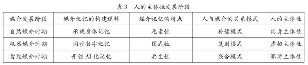 综上,受传统媒介记忆的社会建构范式和技术哲学的关系互构范式启发,我们需要追问的是,作为人类机能的“模拟物”甚至是“超越物”,人工智能模糊了内在技术机能和外化技术媒介的界限,那么由其驱动而产生的AI化记忆是否会催生媒介记忆对人类主体性建构的新机制?
