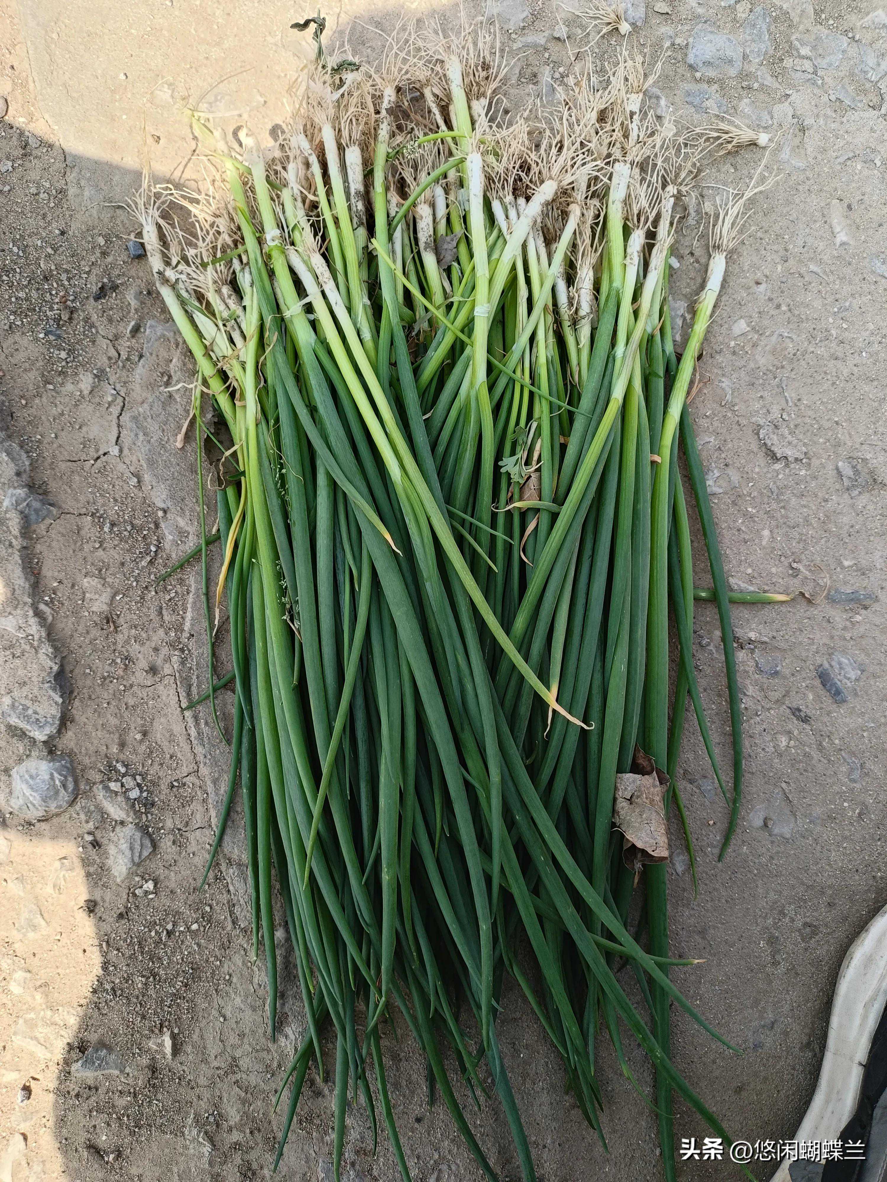 我拔了一把小葱,到路边坐下来摘好,晒晒太阳还不错,补补钙,还能补补阳气,对身体也好。
