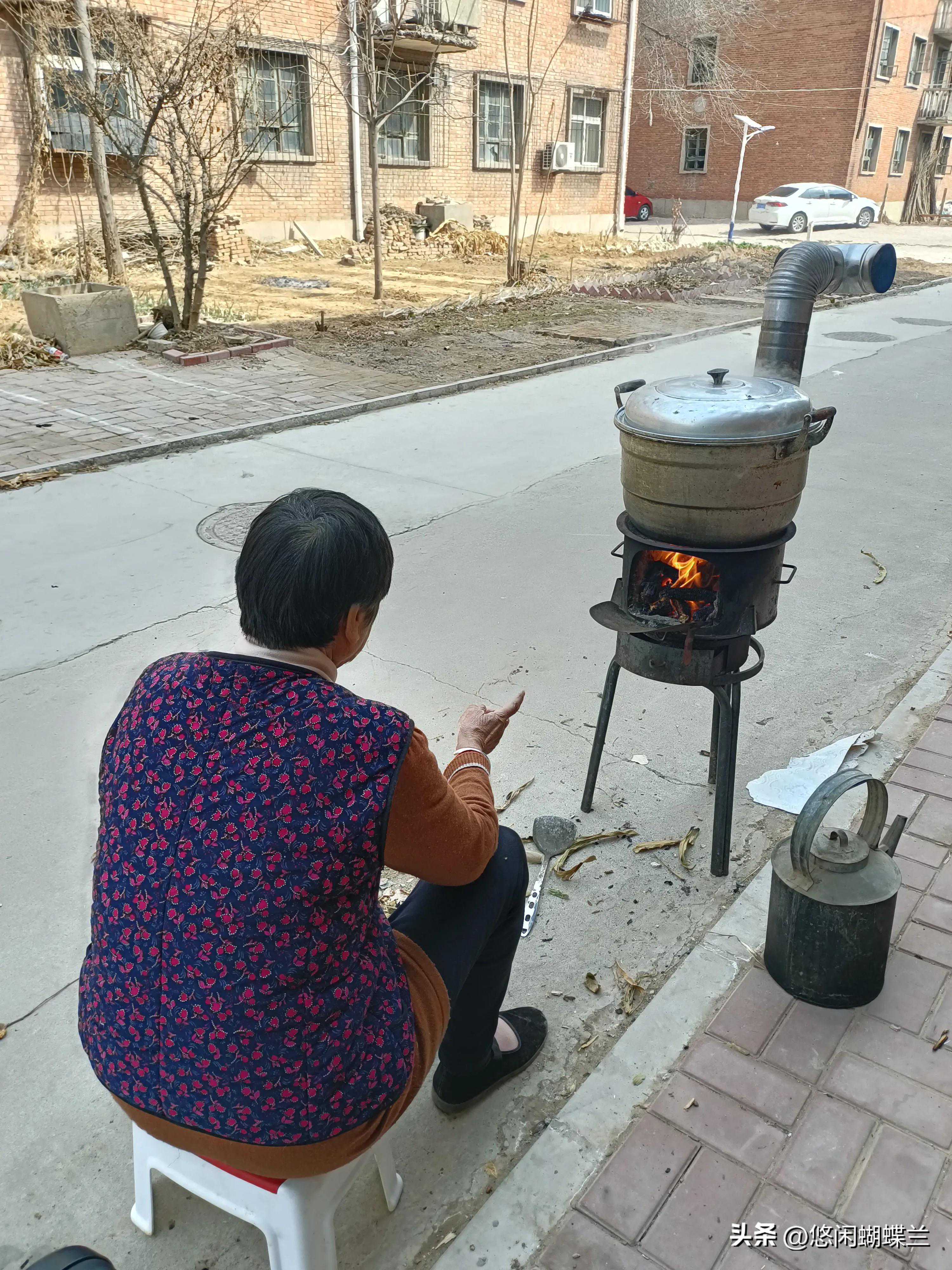 包子包好,摆在蒸锅里,我拿到外面用柴火灶去蒸,老妈最爱烧火了。